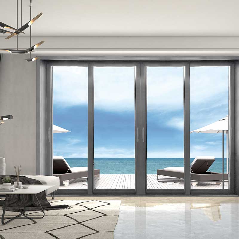 Teknologi lenturan integral bar aluminium berongga, getah butil kadar penghantaran wap air rendah dan getah silikon neutral dua komponen memastikan penebat bunyi berongga yang besar, tinggi dan berkesan. Kawasan pencahayaan yang besar menawarkan kecerahan dan bidang penglihatan yang luas. Daun pintu mempunyai reka bentuk bingkai rata tertanam, memberikan pandangan yang lebih luas tanpa menonjol.